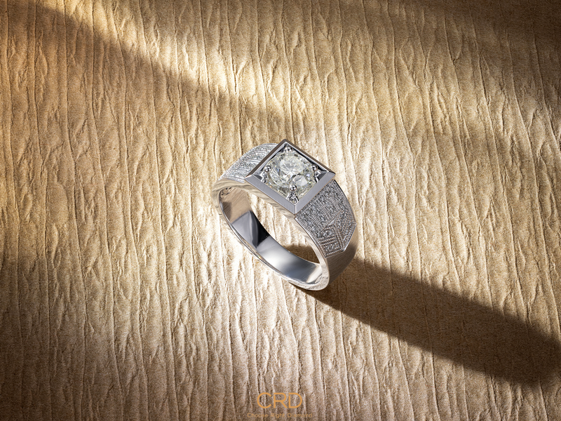 无论是中心四爪镶嵌的单颗美钻,还是点缀在光滑戒臂之上的十颗微型小钻,都闪烁着低调淡雅的光芒,简单的线条映衬着简约时尚的气质。男士戒指,让佩戴者自有一种谦谦君子,温润如玉的淡然气质。简洁的方形台座,精致华丽的戒环,配上璀璨闪亮的钻石,在光芒闪烁中戴出一份细腻的情怀,两边点缀让钻戒不失单调,把你的时尚个性展现的淋漓尽致,谁说美丽是女人的专利,男人也有追求美丽的权利,这款男士戒指是型男的必备款。