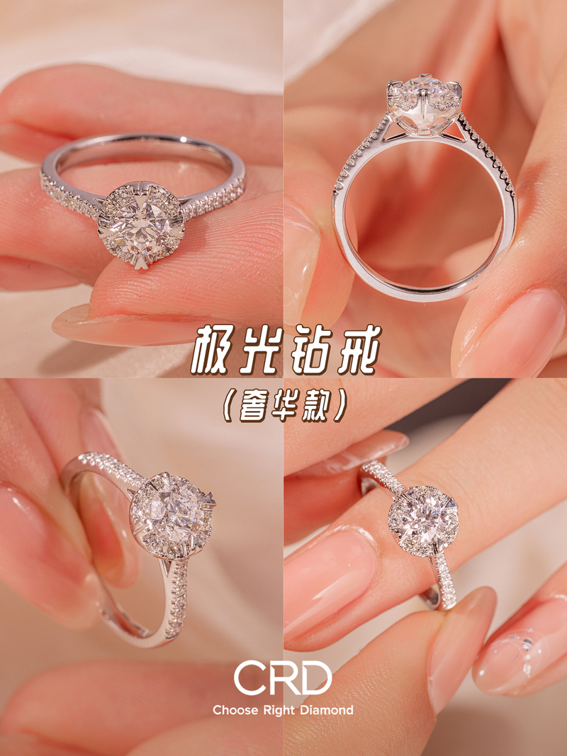 8颗细钻簇拥主钻,见证真爱永恒闪耀。站在地球的北端仰望极光,人类终将意识到自身的渺小;但当指尖的钻石折射出七彩光晕时,我们又能真切触摸到永恒的温度。CRD克徕帝「极光之吻」铂金钻石戒指,不是对极光的简单复刻,而是用珠宝语言讲述的宇宙级浪漫。