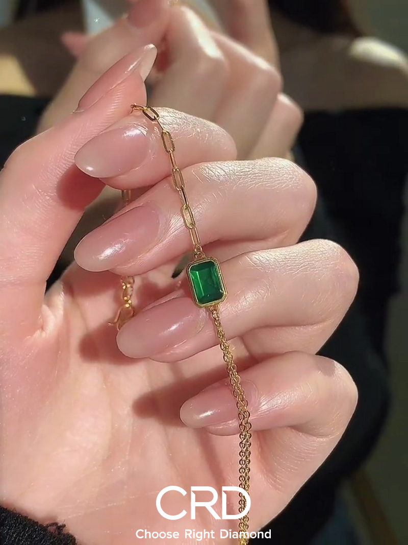 冬天一抹高级绿,CRD绿珐琅方糖足金手链