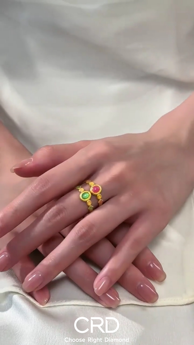 CRD珐琅足金戒指极限二选一!粉色or绿色?