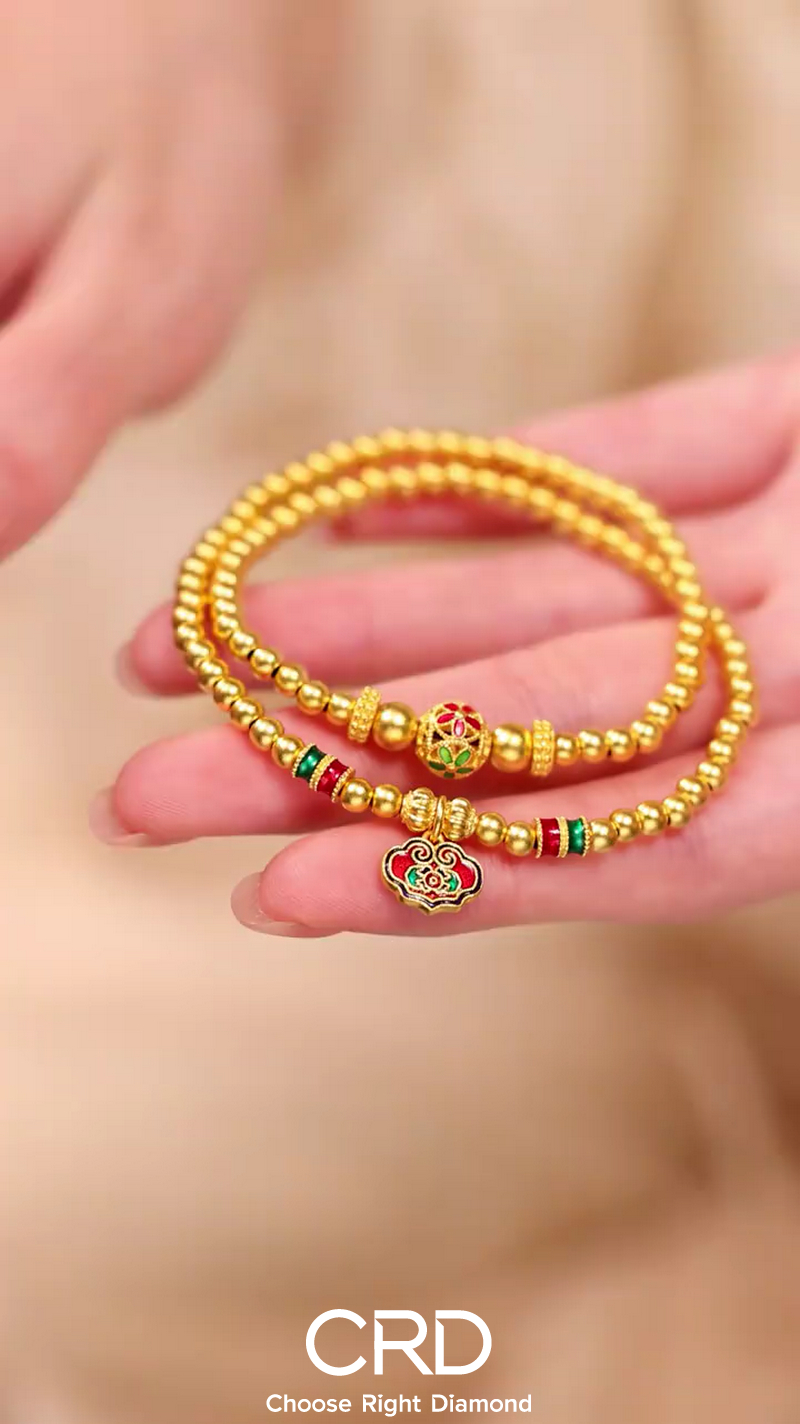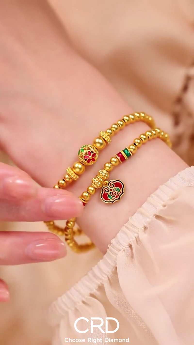 CRD克徕帝双层珐琅足金手串
