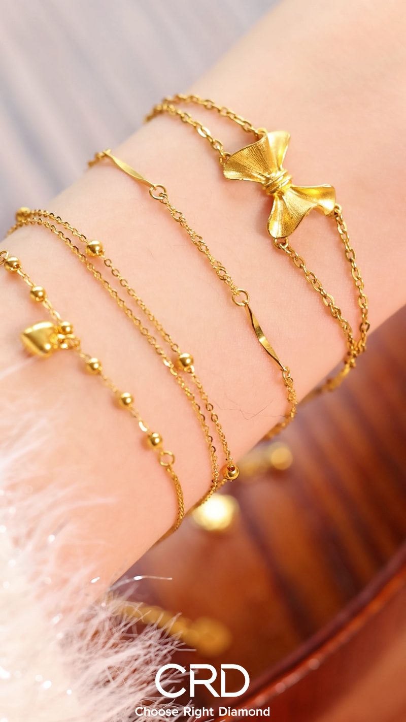 金丝细腻编织,立体弧度闪耀光影,搭配可调节尾链设计