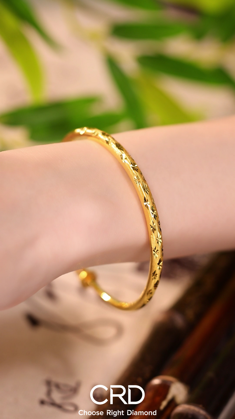 被偏爱的女生,从不需要追光。满天星推拉黄金手镯,以星辰为笺,黄金为墨