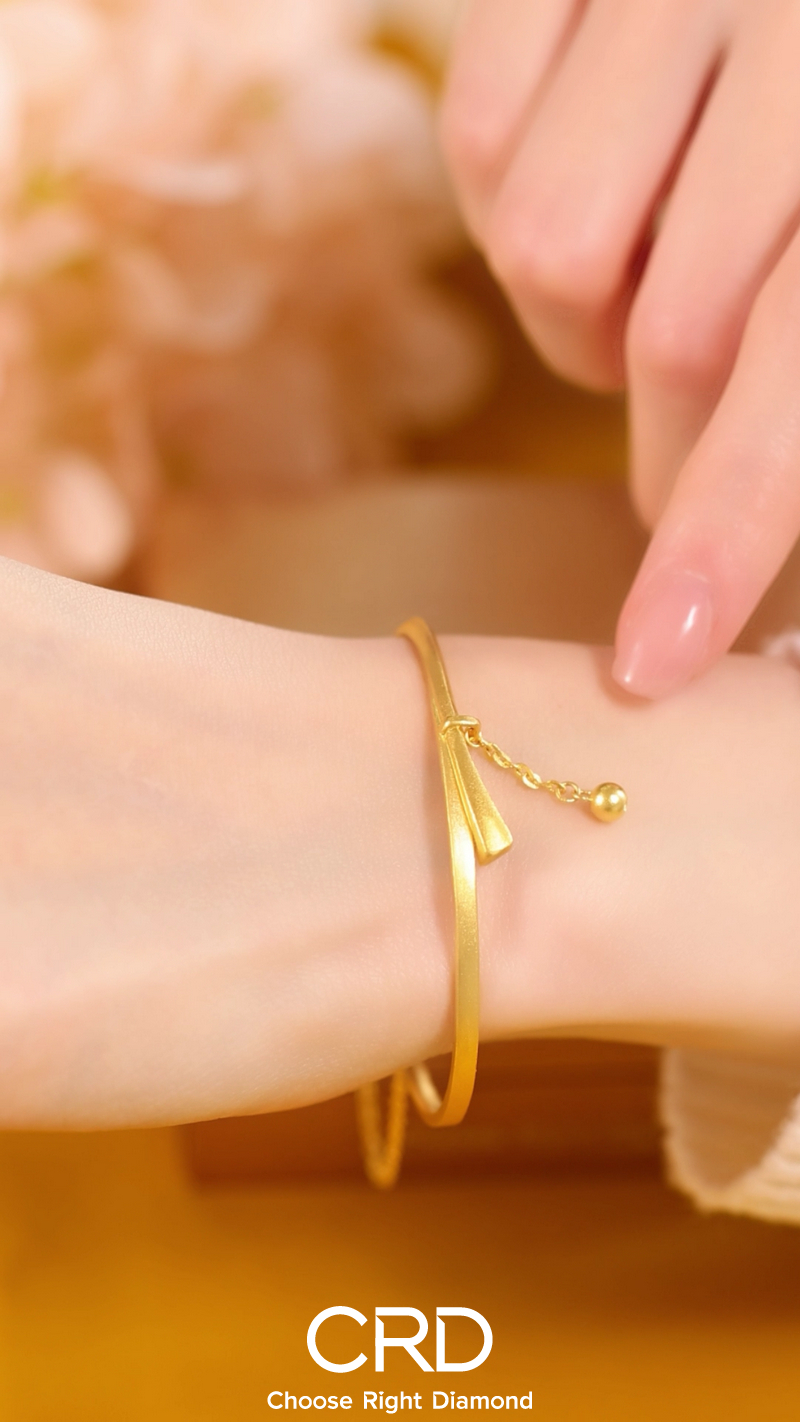 3D硬金工艺让金饰在纤薄中迸发璀璨光芒,贴合腕间的温柔弧度,仿佛第二层肌肤般轻盈。