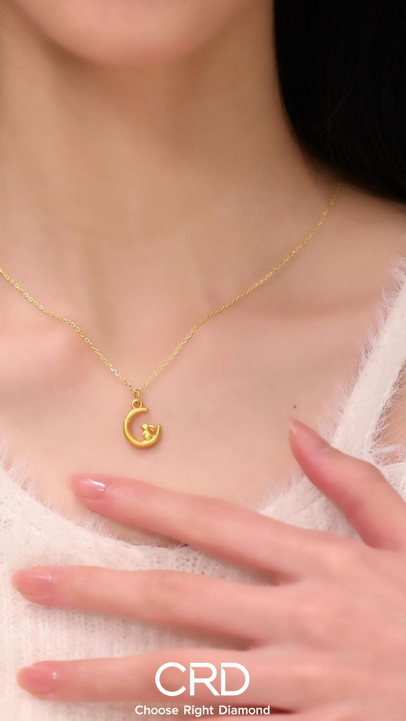 它适合各种年龄段的人群佩戴,无论是送给长辈表达孝心与敬意,还是赠予晚辈寄托期望与祝福,它都能完美传达你的心意。同时,它也是一份极具收藏价值的礼物。随着时间的推移,足金的价值会不断攀升,而这份来自月宫的礼物也将成为你家族传承的珍贵财富。月兔足金项链,让爱与祝福永流传。它见证了无数人的幸福时刻,也承载了无数人的美好期许。现在,就让我们一起戴上这条项链,让月宫的祥瑞与黄金的璀璨共同照耀我们的未来之路,邂逅浪漫与幸运,在时光的长河中,总有一些美好值得珍藏;在珠宝的世界里,总有一款项链能触动心灵。今天,就让我们一同走进月兔足金项链的梦幻世界,感受它带来的独特魅力。月兔足金项链,以足金精心打造,那细腻的质感,仿佛在诉说着岁月的故事,承载着无尽的祝福。