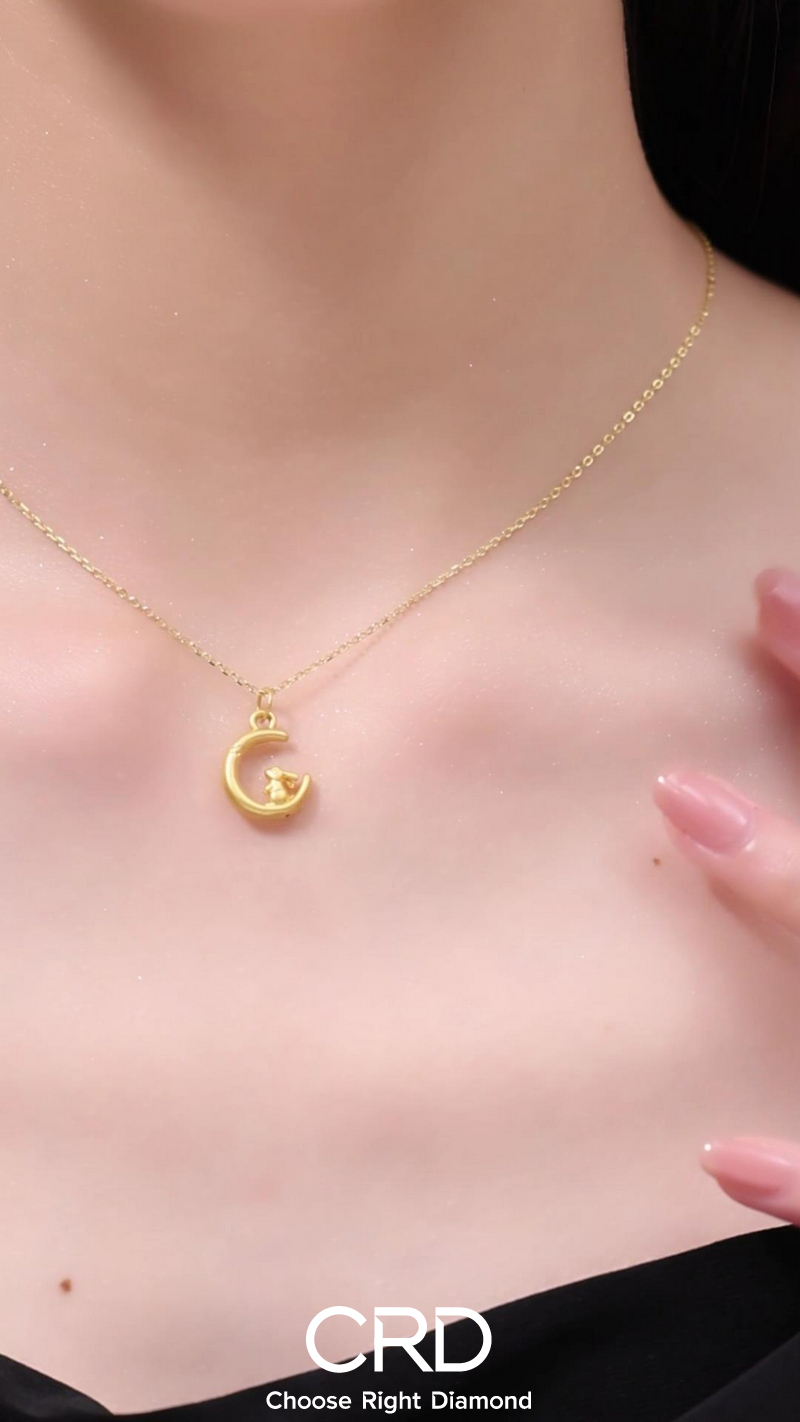 大自然总是能带给我们无尽的灵感与宁静。这款月亮足金项链,以自然元素为灵感,将月亮与星辰、云朵等自然景象巧妙结合,营造出一种清新脱俗的氛围。足金材质的光泽与自然元素的柔美相得益彰,仿佛能带你走进一个梦幻般的童话世界。佩戴它,让你在喧嚣的城市中也能感受到大自然的宁静与美好,成为你日常穿搭中的一抹清新亮色。奢华,是一种态度,更是一种对品质生活的极致追求。这款月亮足金项链,以奢华尊贵为设计理念,选用顶级足金材质,搭配璀璨点缀,每一处细节都彰显着无与伦比的尊贵与奢华。佩戴它,仿佛能瞬间提升你的气质与气场,让你在人群中脱颖而出。它适合那些追求高品质生活、注重身份象征的你,让每一次佩戴都成为一次身份的彰显与荣耀的象征。